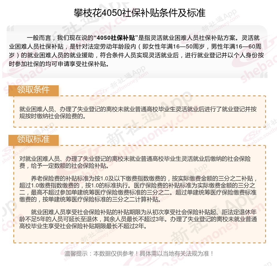 2025攀枝花灵活就业4050社保补贴是一项面向特定年龄段的就业困难人群的社会保险补贴。