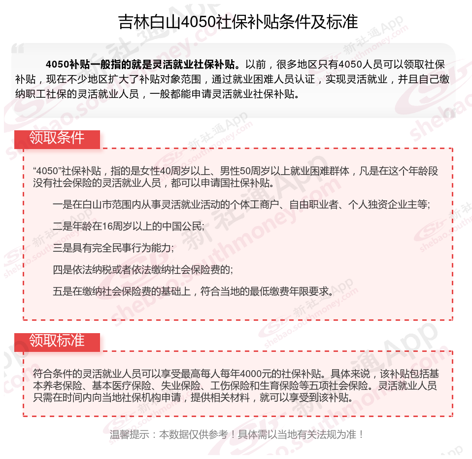一、2023-2024年吉林白山灵活就业4050社保补贴标准和条件是什么