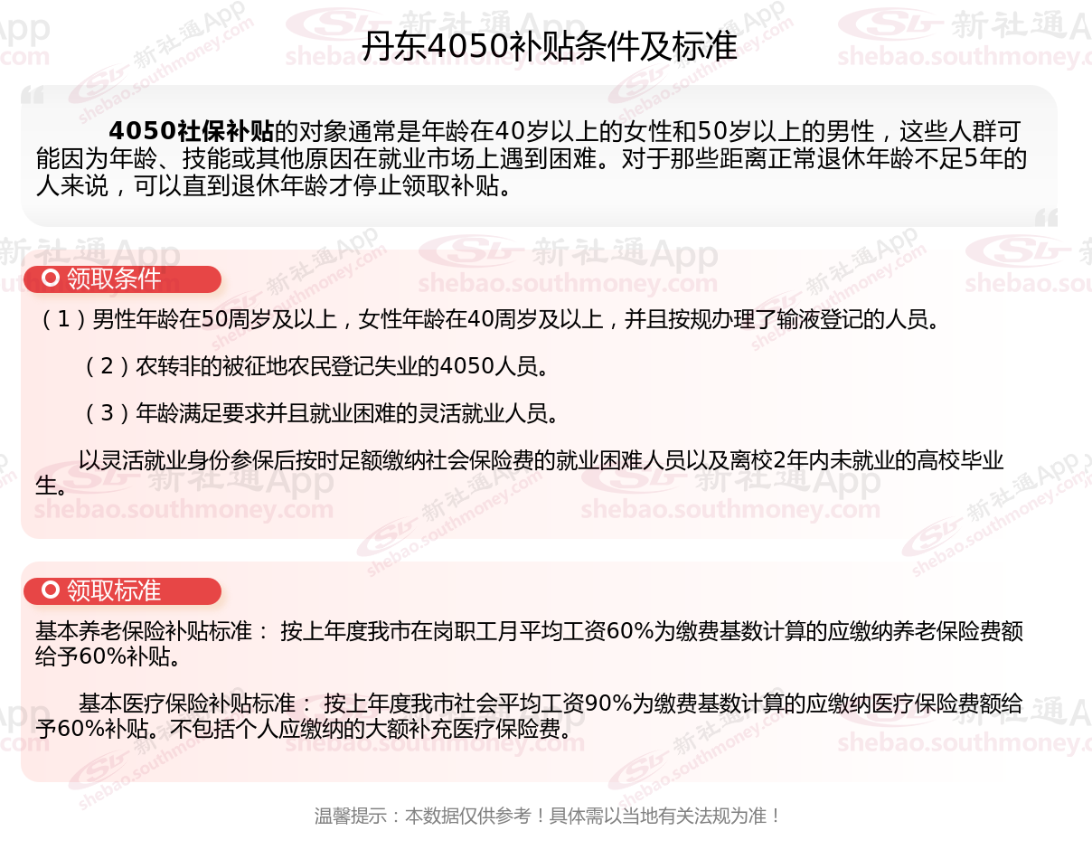 2025丹东4050补贴主要针对的是年龄在40岁以上的女性和50岁以上的男性,这些人群通常因为年龄较大而面临就业困难。