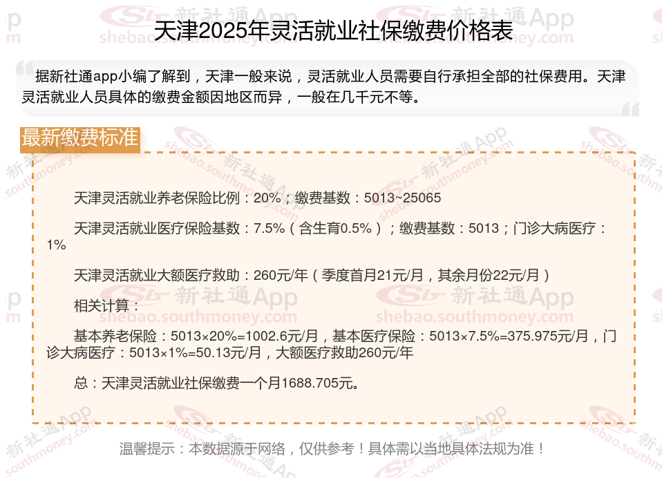 一、天津灵活就业人员社会保险缴费档次表,2025年最新个人社保养老保险缴费标准一览