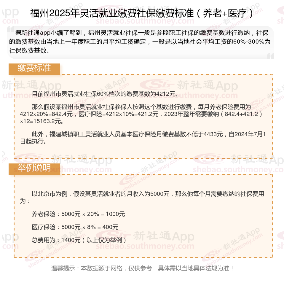 福州灵活就业人员基本养老保险缴费基数暂按不低于4212元;