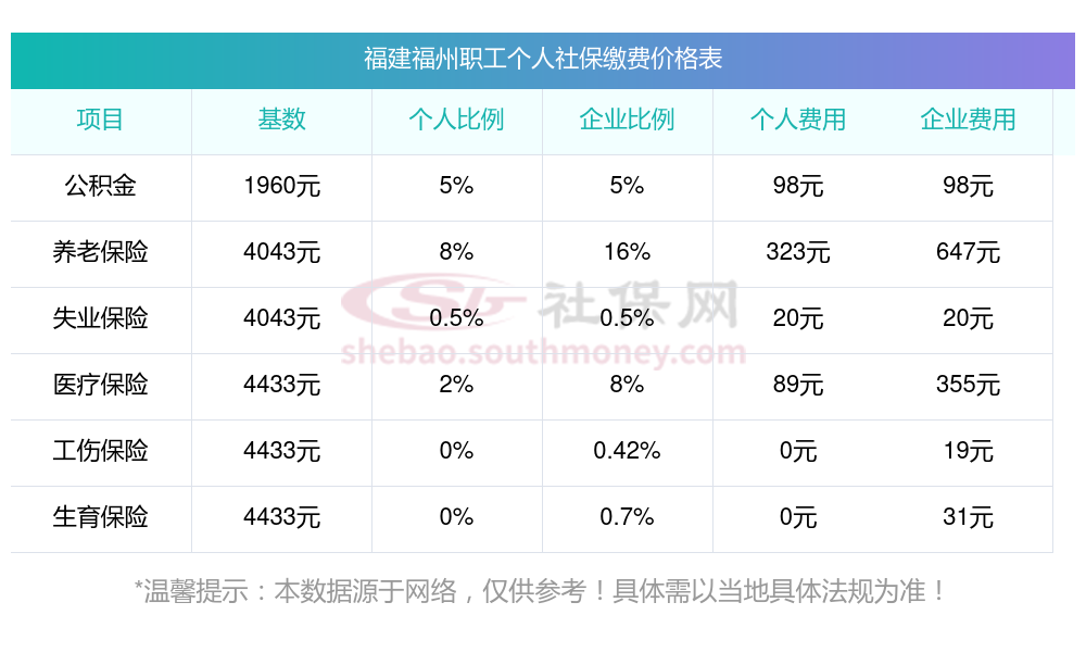 福建福州社保各基数的缴费比例是多少?和社保网一起来看看,新社通app-社保缴费查询工具提供的最新数据如下: