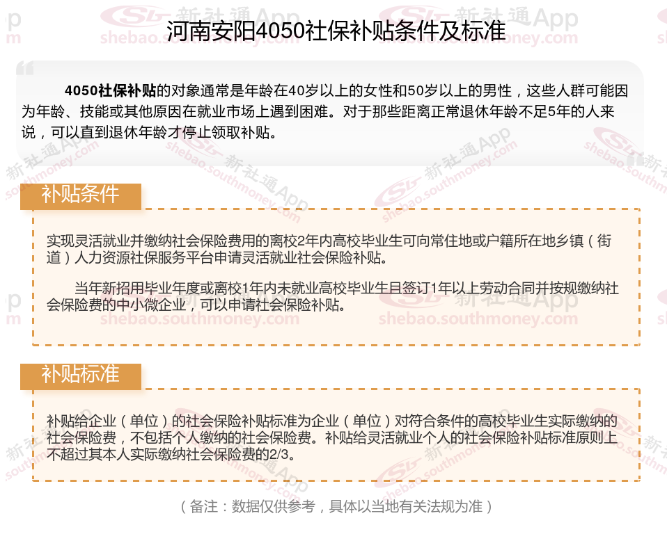 二、河南安阳4050社保补贴标准及条件2025年,最新如下