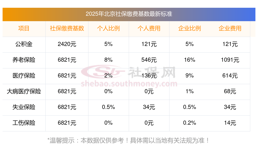 北京2025年社保缴费个人和公司各承担多少?北京五险一金每月最低交多少?下表是2025年北京社保费用明细参考,新社通app-社保缴费查询工具提供的最新数据如下: