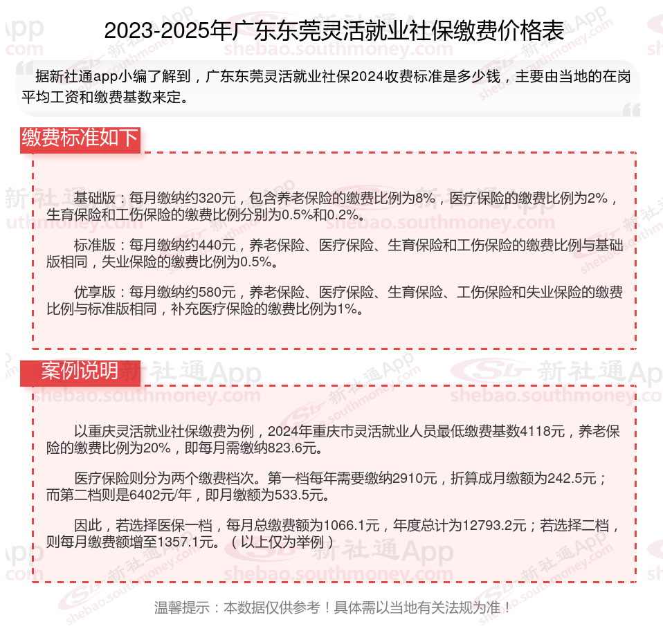 广东东莞社保缴费多少钱?下表是2024-2025年广东东莞社保费用明细参考,根据新社通app-社保缴费查询工具提供的最新数据如下: