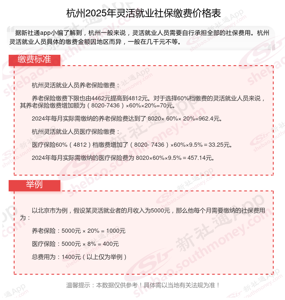 对于灵活就业者来说,社保缴纳是一个非常重要的问题。那么,2025年杭州灵活就业社保怎么交?一个月要交多少呢?领取待遇如何计算的?接下来随新社通APP小编一起了解具体详情吧。