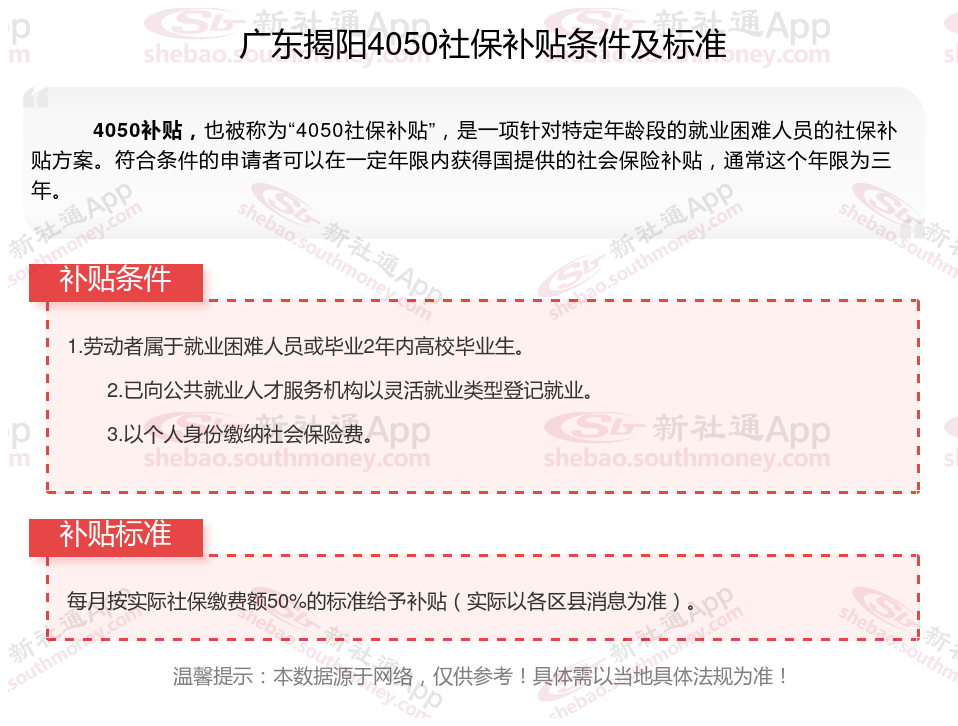一、2025年广东揭阳灵活就业4050社保补贴标准最新是多少?
