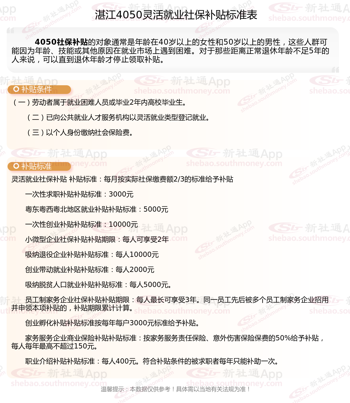 二、湛江4050社保补贴标准及条件2025年,最新如下