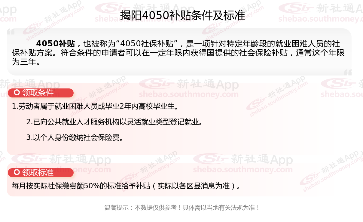 一、2025年揭阳4050社保补贴标准是怎么样的?揭阳4050一年可拿多少钱?