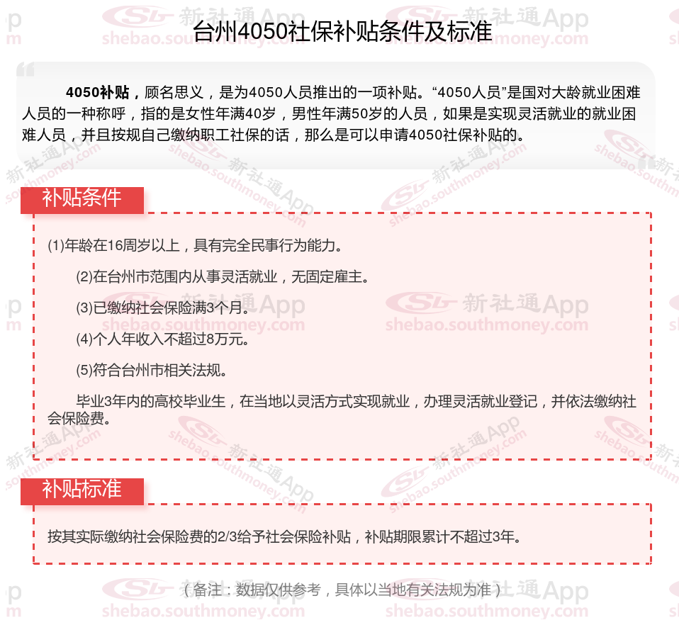 一、2023-2024年台州4050灵活就业社保补贴标准及条件