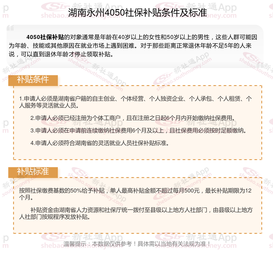 二、湖南永州4050社保补贴标准及条件(2025年最新)