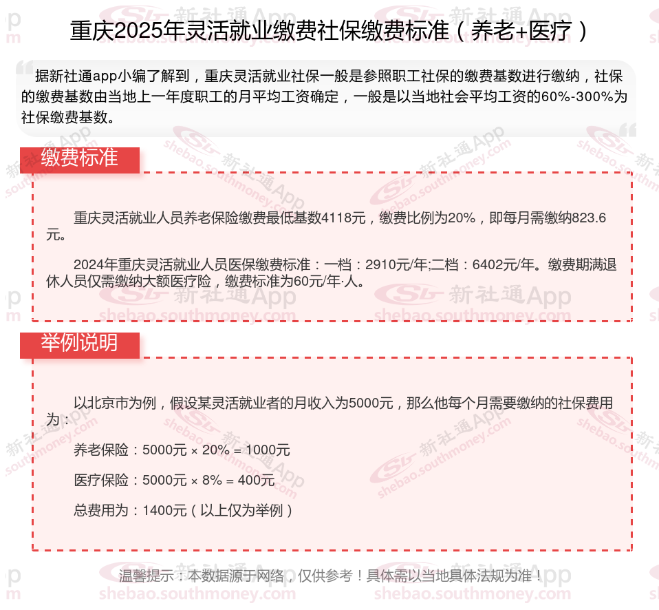 一、重庆灵活就业人员社会保险缴费档次表,2025年最新个人社保养老保险缴费标准一览