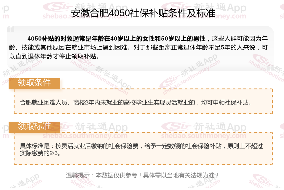 二、安徽合肥4050社保补贴标准及条件2025年最新消息
