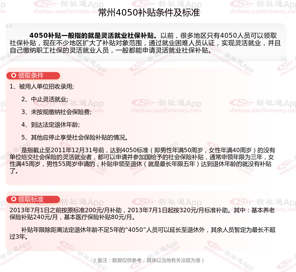 一、常州4050社保补贴标准及条件是多少?