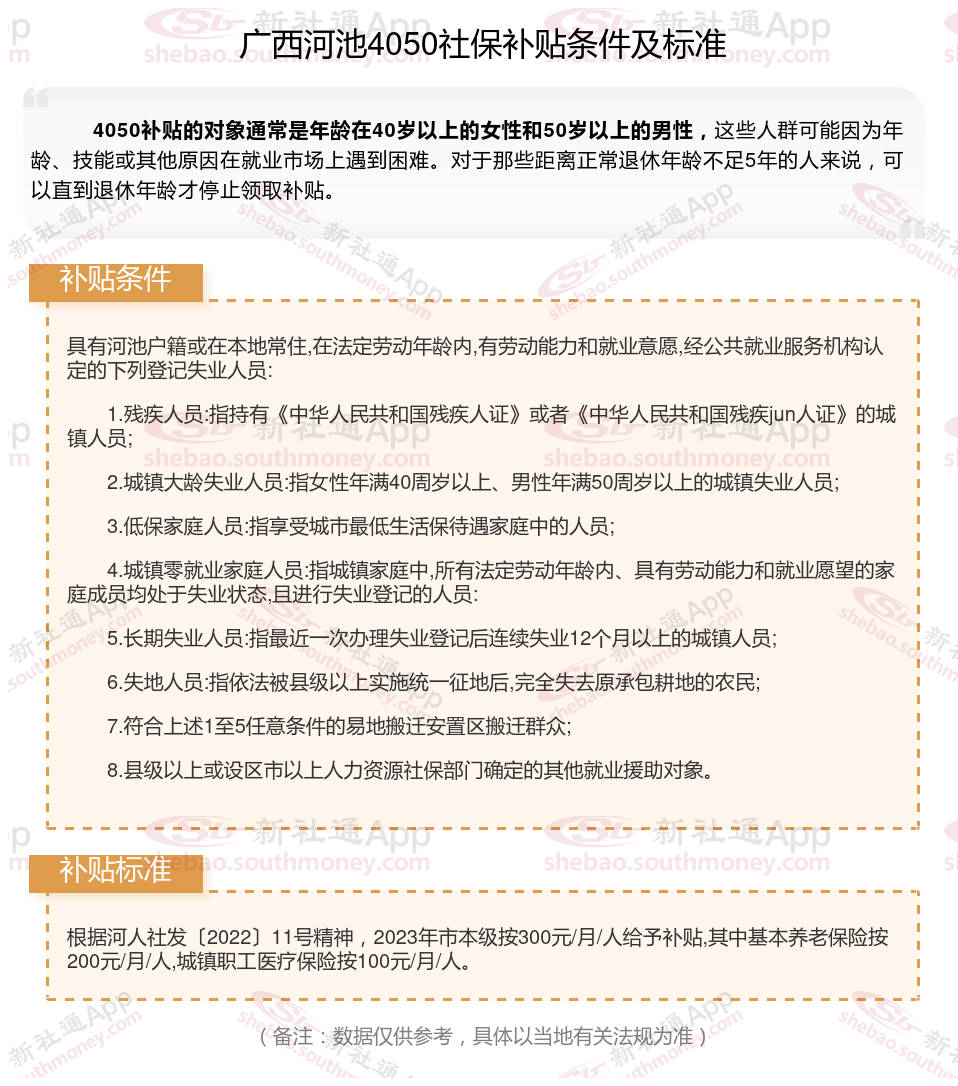二、广西河池4050社保补贴标准及条件2025年最新消息