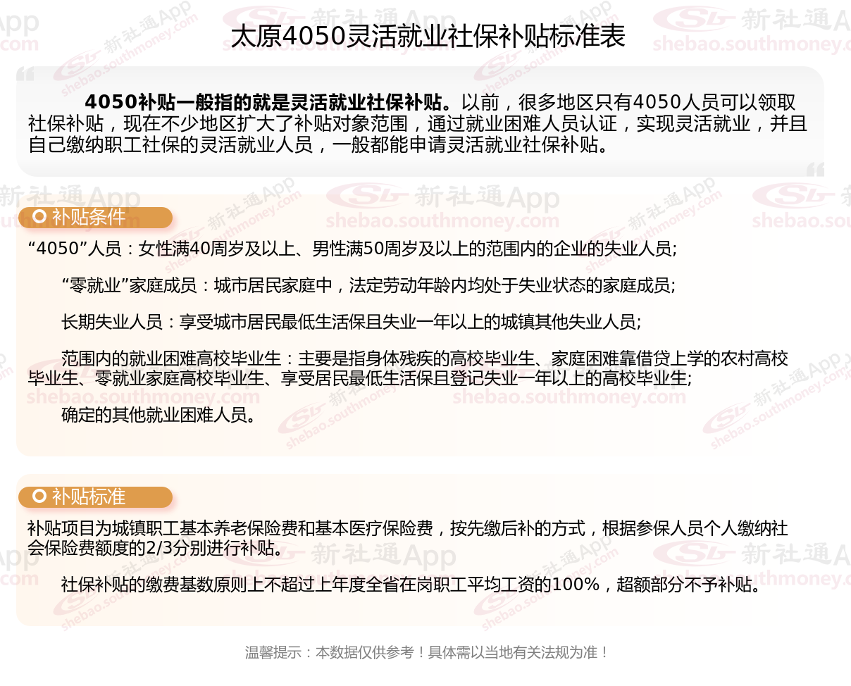 一、2023-2024年太原灵活就业4050社保补贴标准和条件是什么
