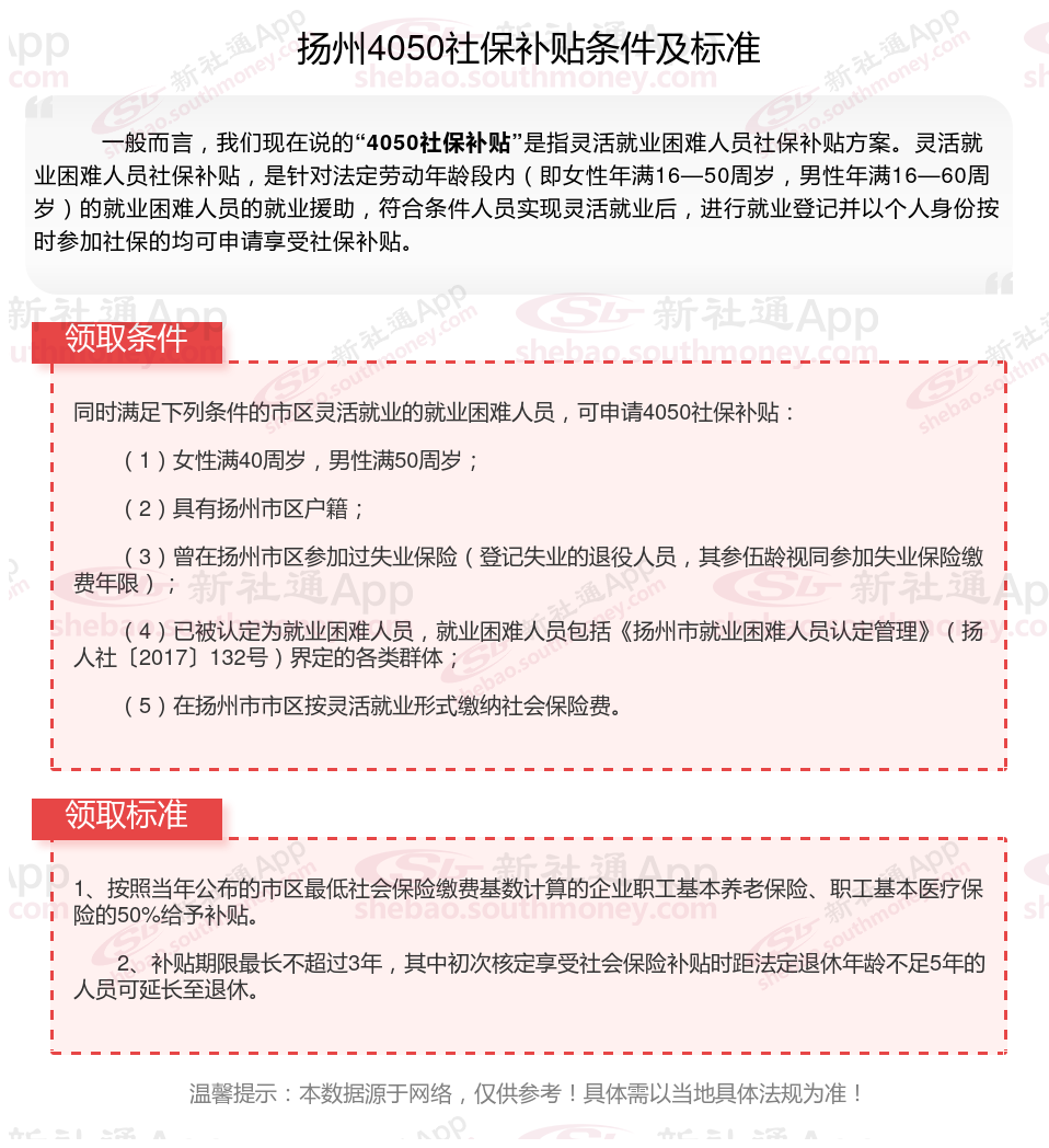 2025扬州灵活就业4050社保补贴是一项面向特定年龄段的就业困难人群的社会保险补贴。