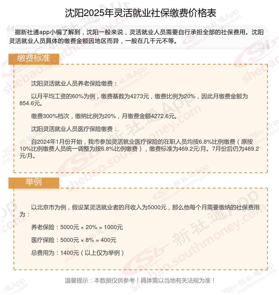 一、2025年沈阳灵活就业人员社保养老+医保缴费标准一年多少钱?