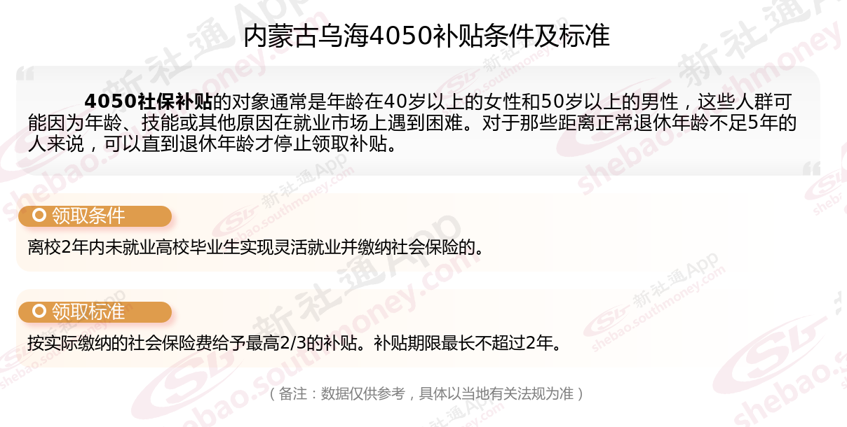 2025内蒙古乌海4050补贴主要针对的是年龄在40岁以上的女性和50岁以上的男性,这些人群通常因为年龄较大而面临就业困难。