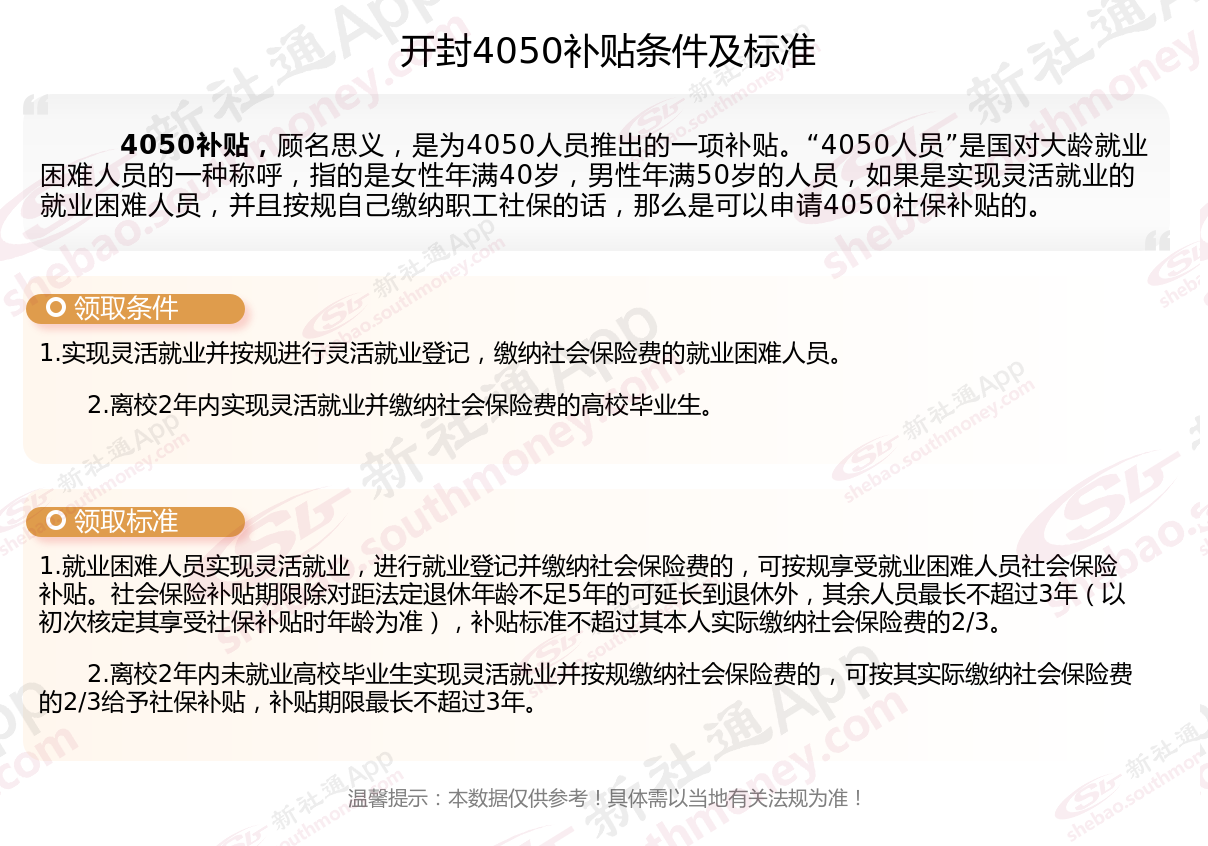 二、开封灵活就业4050社保补贴标准2025年(4050社保条件是什么)