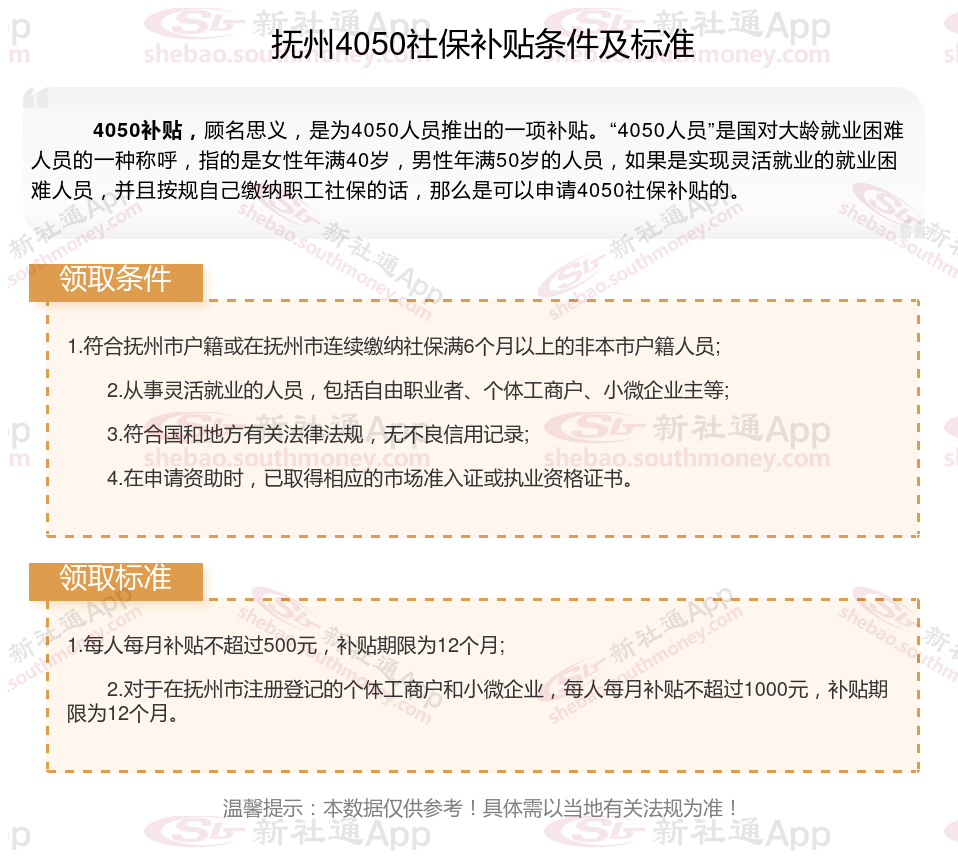 二、抚州4050社保补贴标准及条件(2025年最新)