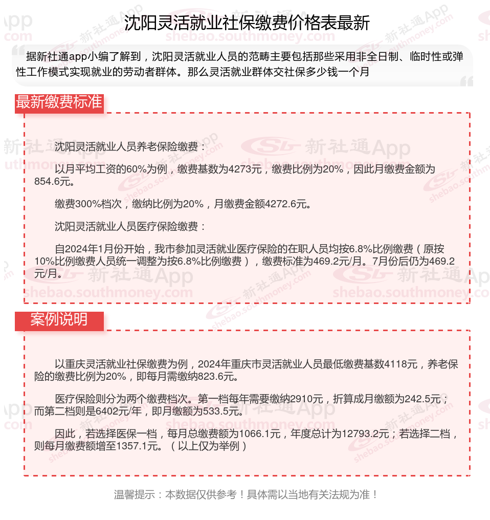 沈阳灵活就业自己交社保一个月要交多少钱?交多久可以领?根据新社通app-社保缴费查询工具提供的最新数据如下: