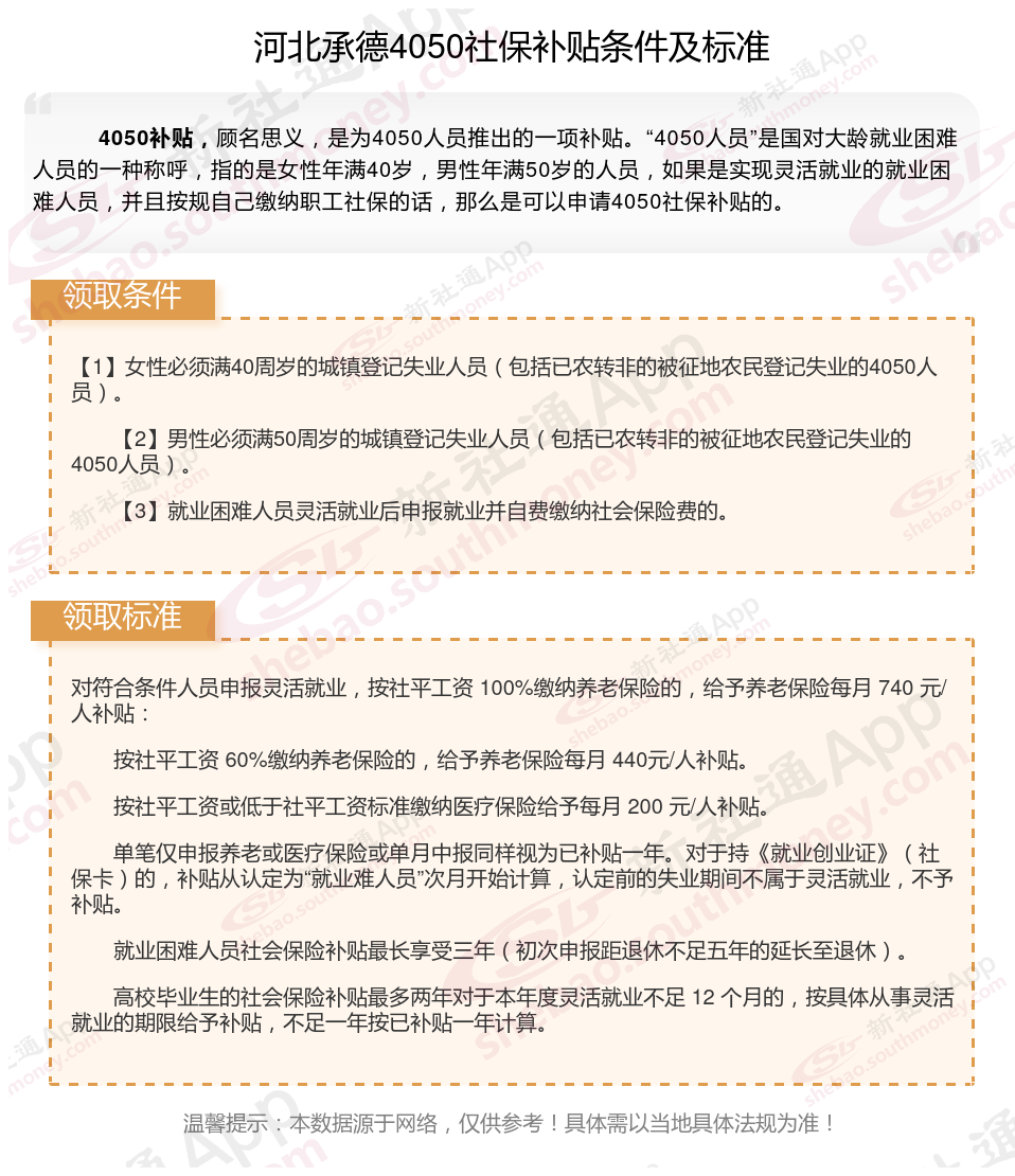 2025河北承德灵活就业4050社保补贴是一项面向特定年龄段的就业困难人群的社会保险补贴。