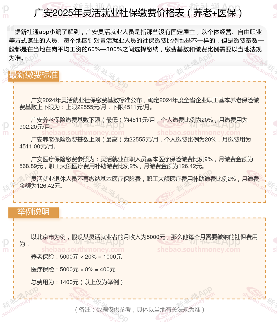 一、2025年广安灵活就业社保多少钱一个月?