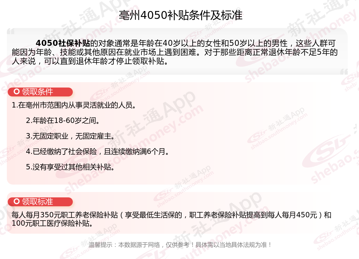 二、2025年亳州4050社保补贴标准(亳州4050灵活就业人员补贴标准是多少钱?亳州2025年4050补贴新规能领多少钱?)