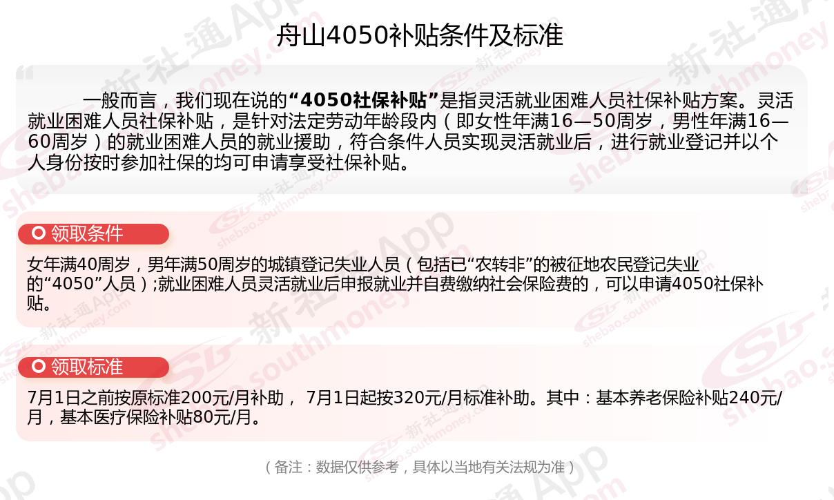 二、2025年舟山4050社保补贴标准及条件是什么?