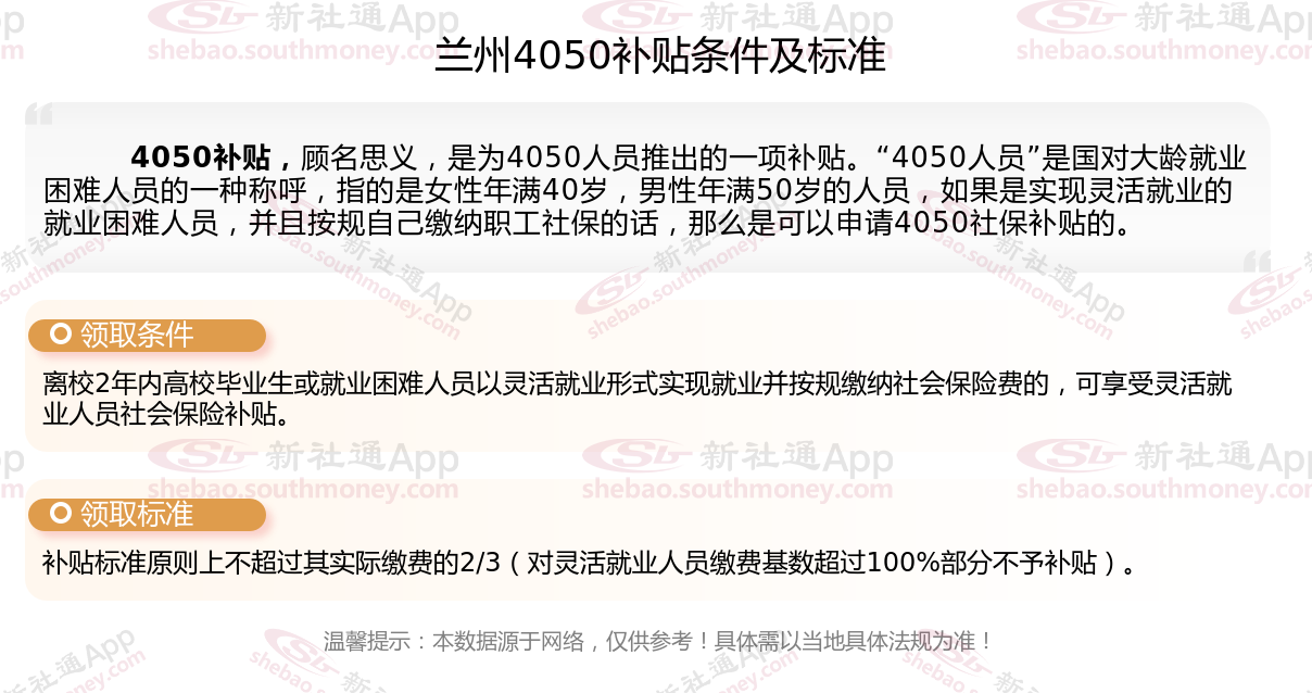 一、兰州4050社保补贴标准及条件2025年最新消息