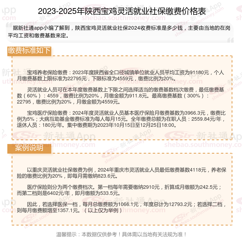 二、陕西宝鸡2024年灵活就业社保缴费基数、比例最新消息