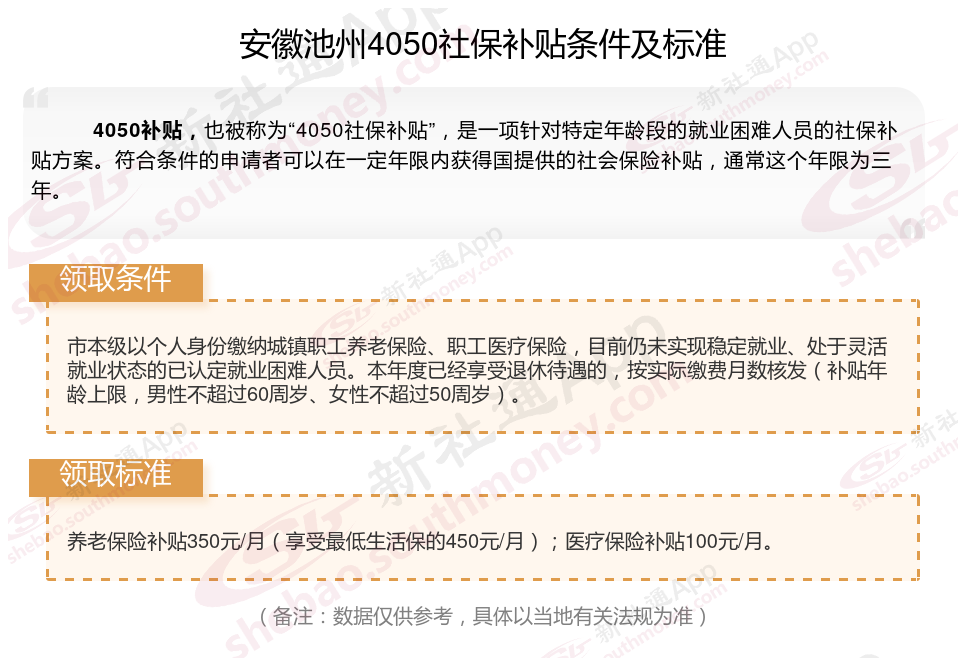 二、安徽池州4050社保补贴标准及条件2025年,最新如下