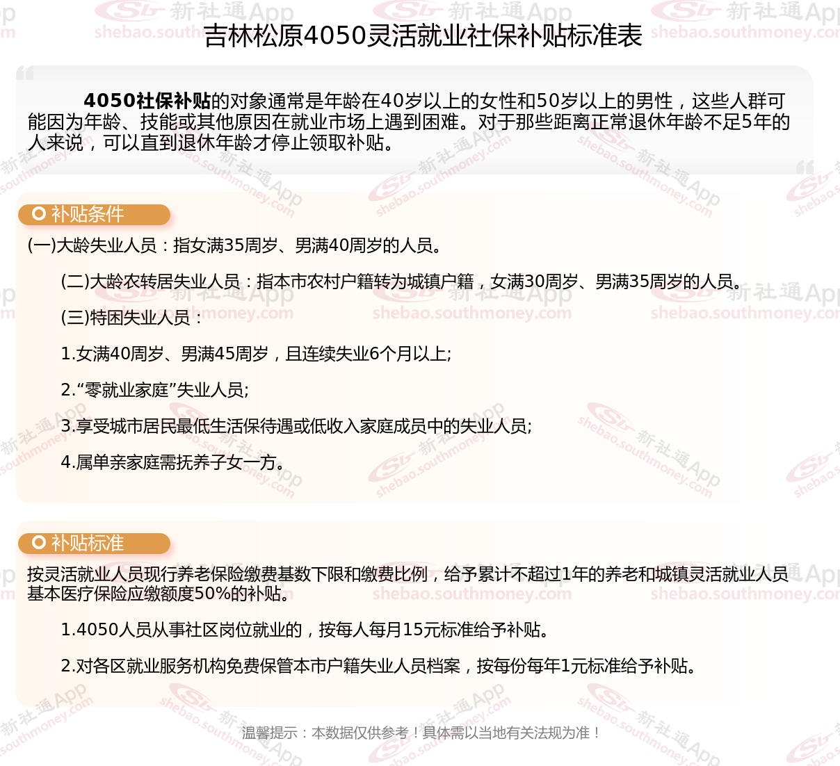 二、吉林松原4050社保补贴标准及条件(2025年最新)