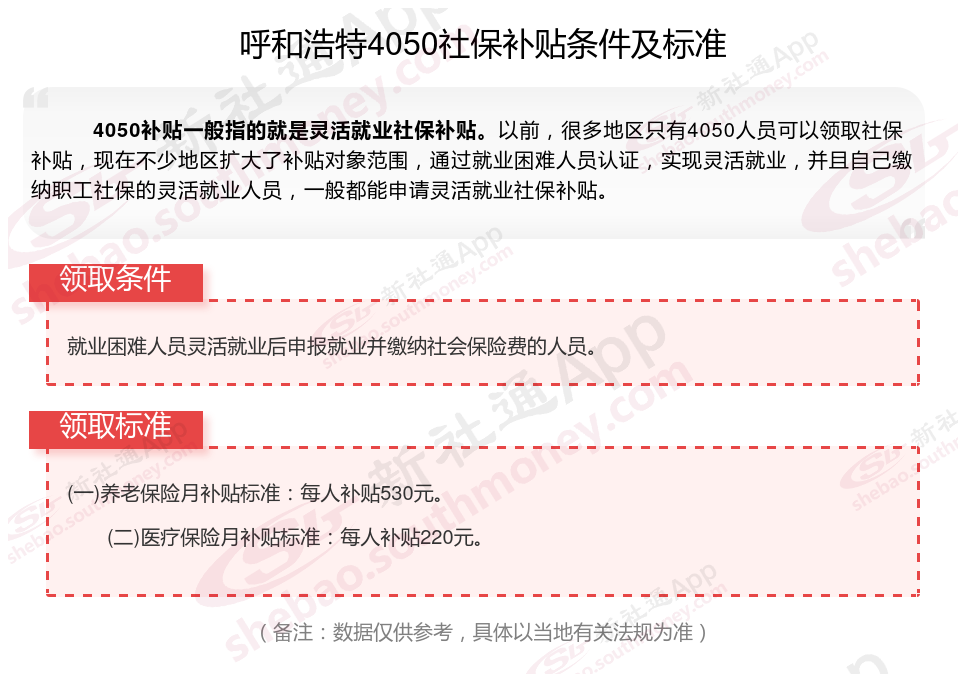一、呼和浩特4050社保补贴标准及条件2025年最新消息