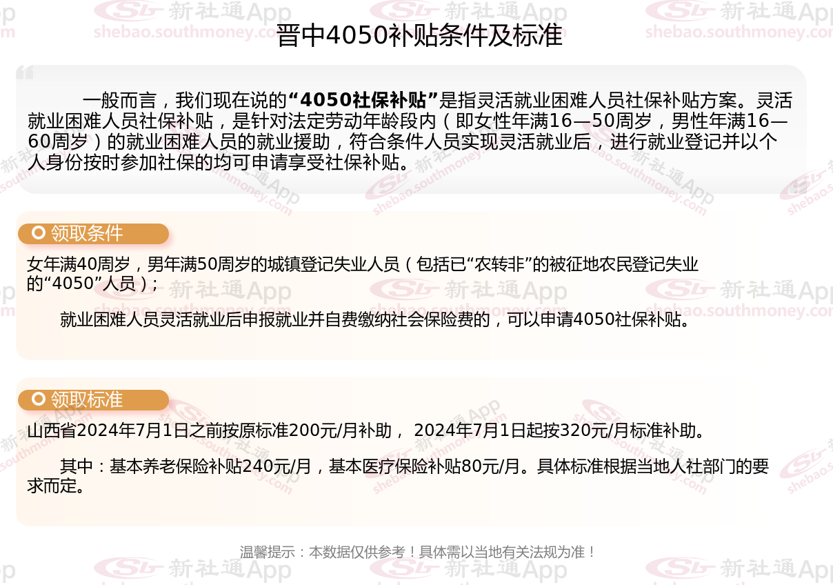 一、2025年晋中4050社保补贴新规2025年晋中4050社保补贴标准是什么,需要什么条件?