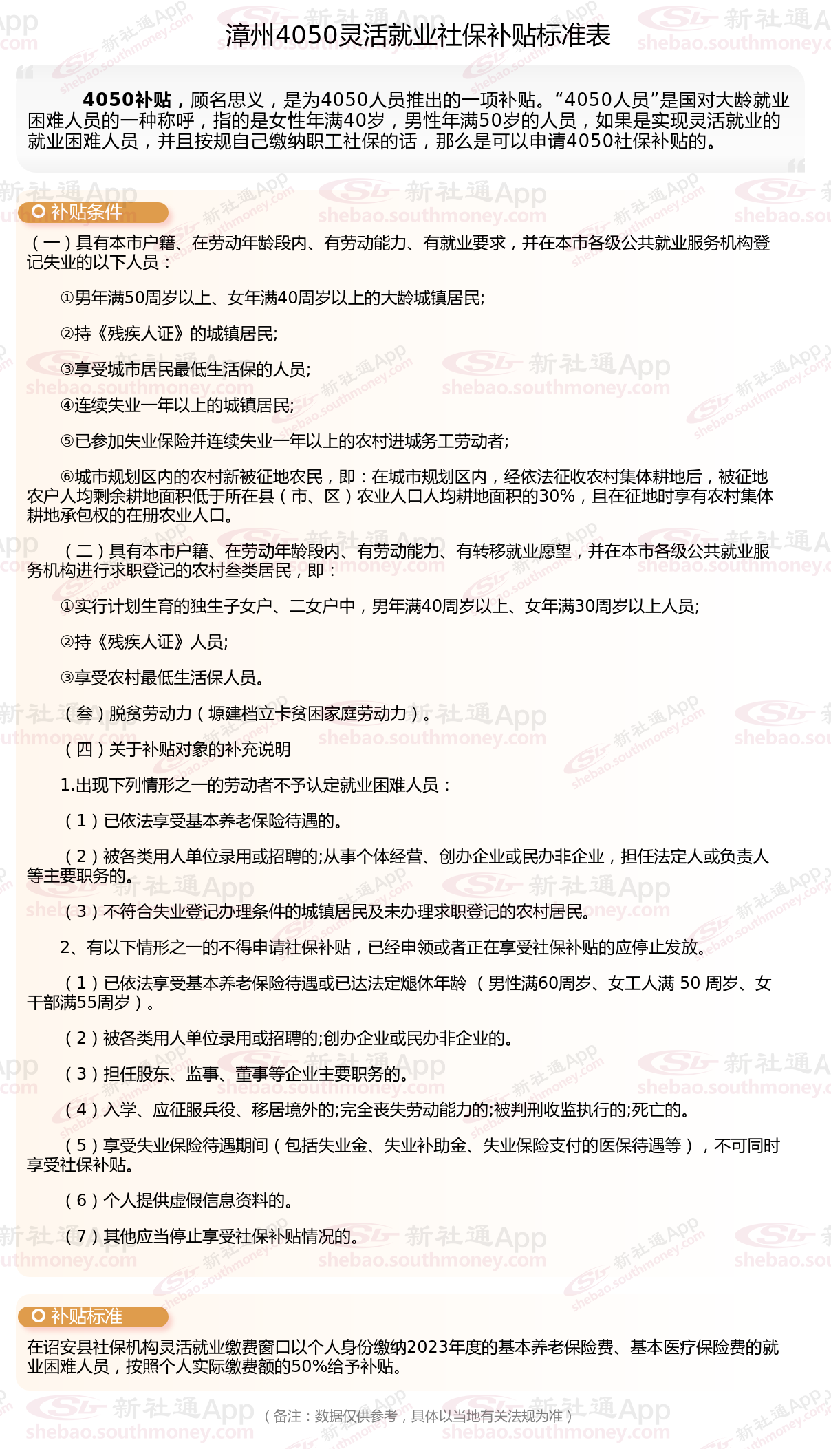 一、2025年漳州灵活就业4050社保补贴标准最新是多少?