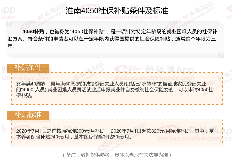 二、2025年淮南4050社保补贴标准及条件,最新如下: