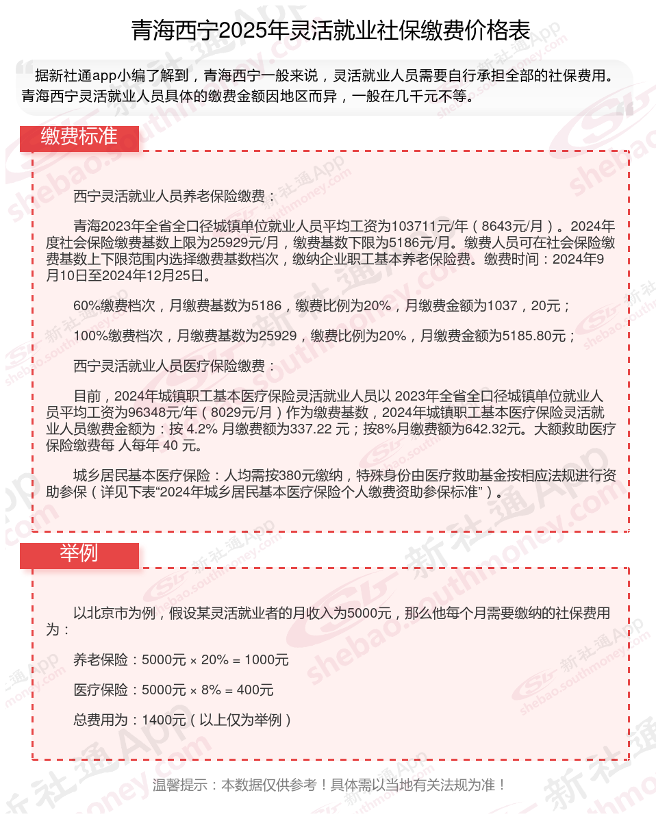 二、青海西宁2025年灵活就业社保缴费基数及比例最新消息