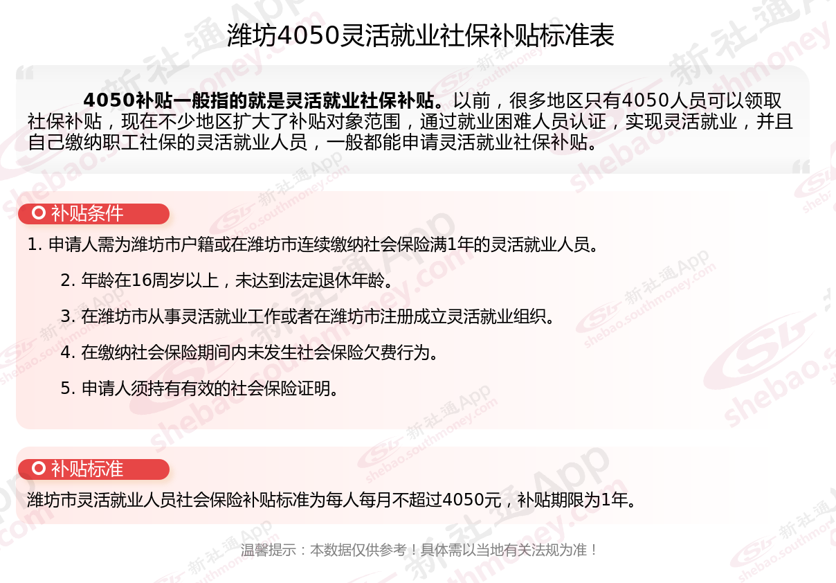 一、2023-2024年潍坊4050灵活就业社保补贴标准及条件