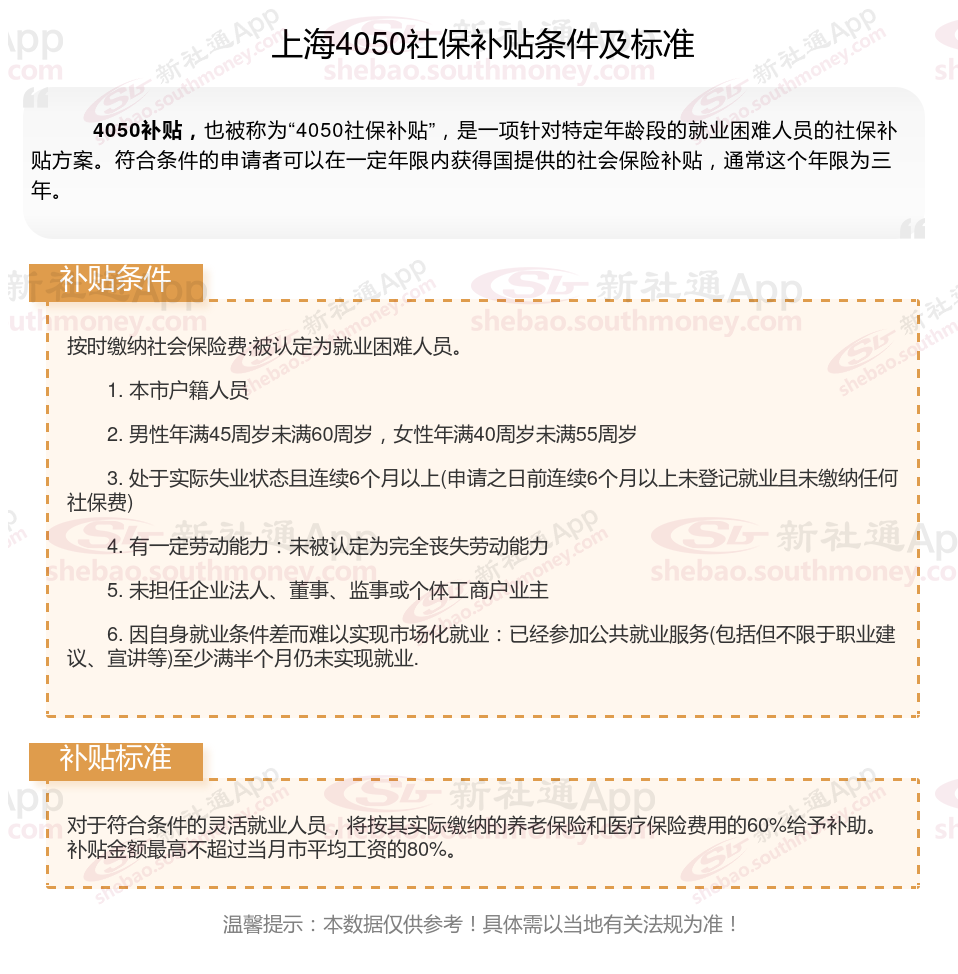 一、2025年上海4050社保补贴新规2025年上海4050社保补贴标准是什么,需要什么条件?