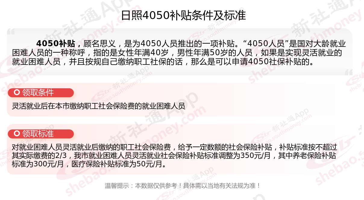 二、2025年日照4050社保补贴标准是多少,最新4050社保补贴领取条件来了