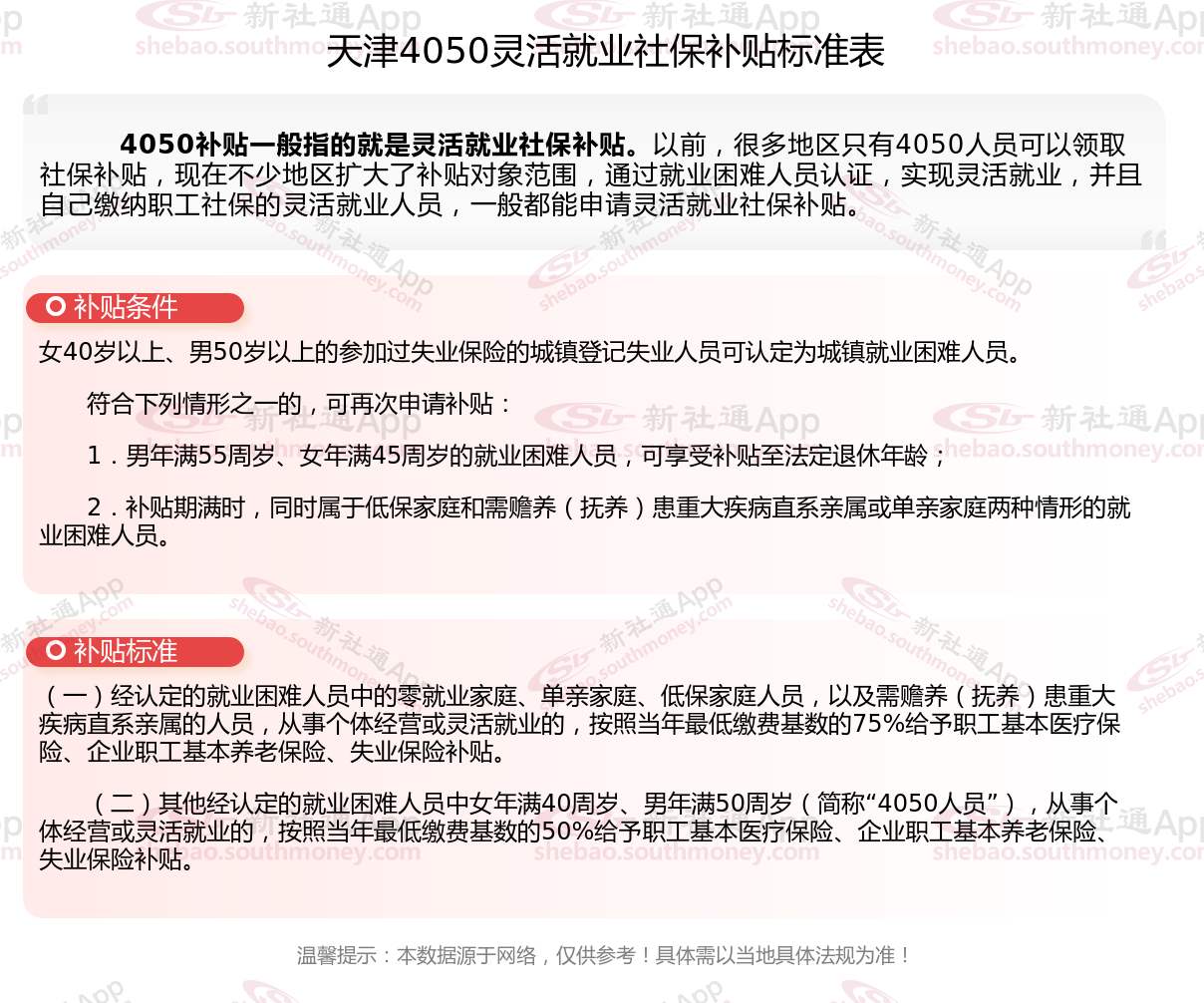 二、天津4050社保补贴标准及条件4050社保补贴,最新如下