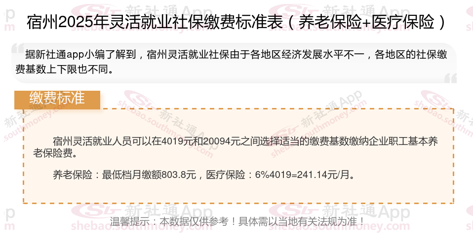 据新社通app数据显示,宿州灵活就业养老保险缴费基数2024-2025年最新标准如下: