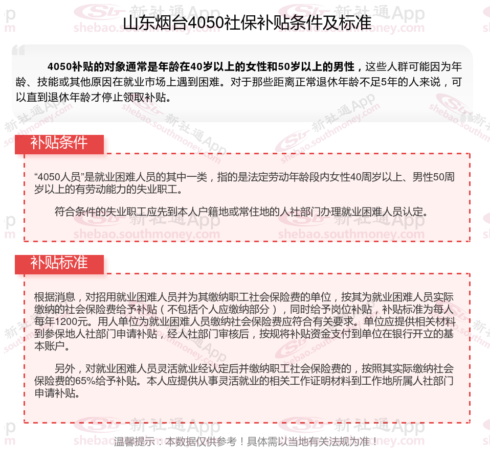 2025山东烟台4050补贴主要针对的是年龄在40岁以上的女性和50岁以上的男性,这些人群通常因为年龄较大而面临就业困难。