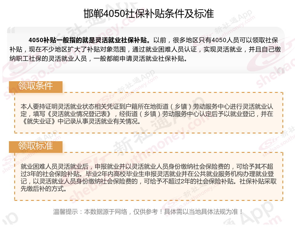 二、邯郸4050社保补贴标准及条件2025年最新消息