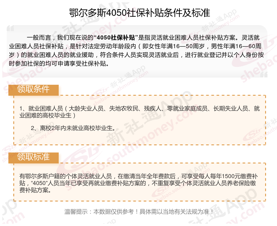 二、鄂尔多斯4050社保补贴多少钱一个月,鄂尔多斯4050社保补贴新规2025年最新标准