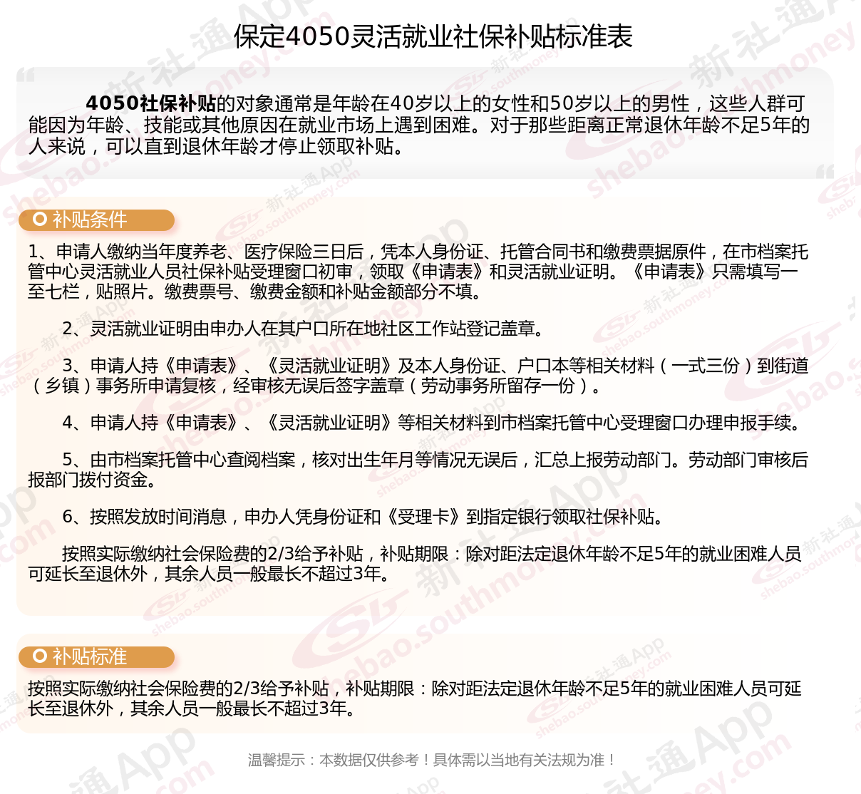 二、2025年保定4050社保补贴标准,最新领取条件来了