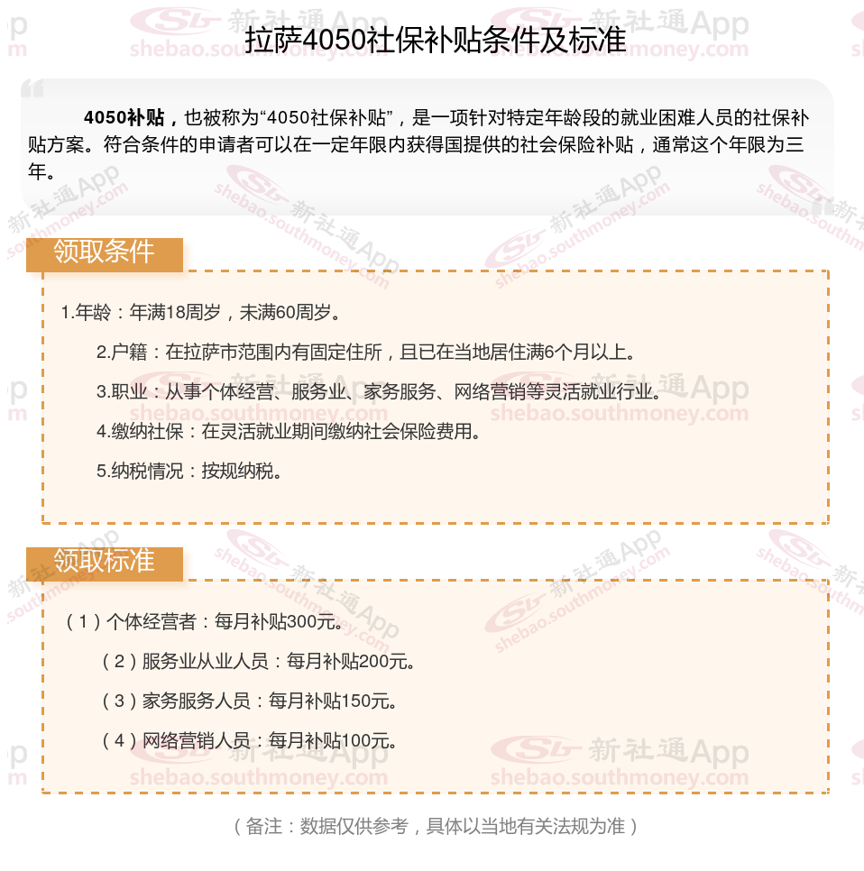 二、拉萨4050社保补贴标准及条件2025年,最新如下