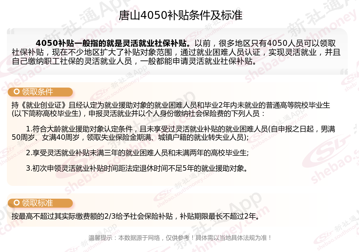 二2025年唐山灵活就业4050社保补贴标准及条件是什么